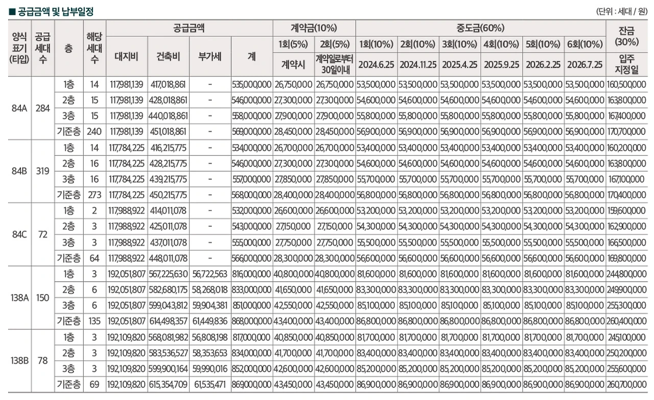 - 공급면적 178A: 분양가 86,800만원, 분양세대수 150세대