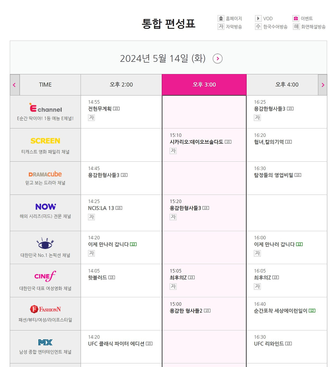 시간대별 프로그램 확인